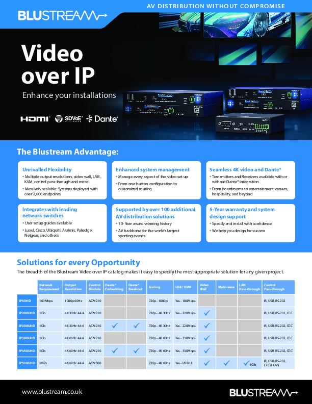 - In-built 2ch Dante receiver for embedding of audio onto the HDMI signal or breakout to local analogue audio output