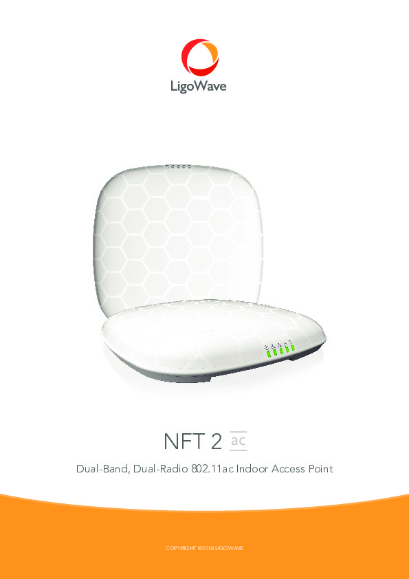 The NFT 2ac is a WI-FI access point based on 802.11ac technology with an integrated 2.4 and 5GHz (2×2) MiMo radios with 27dBm output power. The gigabit Ethernet port with 802.3af/at support allows powering the device with PoE switches. Two additional Gigabit Ethernet ports allow extending the network or connecting additional devices to the access point. Small form factor (15cm only), sleek design and unique mounting bracket makes the NFT 2ac ideal for