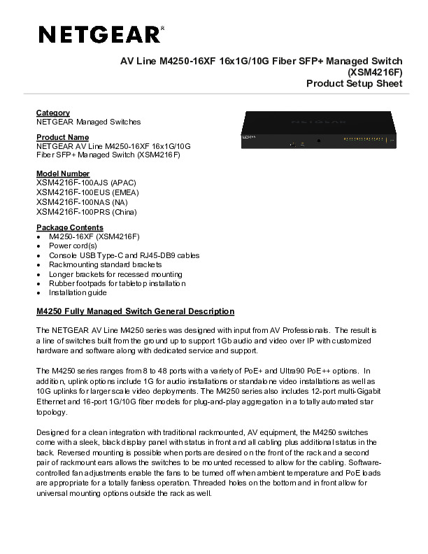 The NETGEAR AV Line M4250 series was designed with input from AV Professionals. The result is a line of switches built from the ground up to support 1Gb audio and video over IP with customised hardware and software along with dedicated service and support.