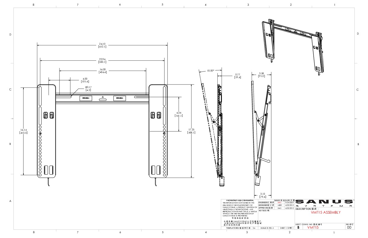The SANUS VMT15 Super Slim tilting mount places 32" – 50" TVs just 0.8" / 1.9cm from the wall, yet still allows up to 10° of tilting capability.
