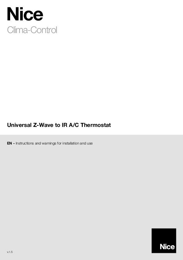 Clima-Control is a Z-Wave 800 series thermostat that is a Z-Wave-to-IR converter for controlling air conditioners by receiving Z-Wave commands and converting them to IR commands. Clima-Control can control different makes and models of air conditioners thanks to a large database of IR codes stored in the cloud. The clear and large display allows the temperature and humidity to be intuitively read and the air conditioner to be easily controlled with buttons.